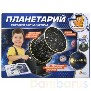 С этим занимательным набором ребёнок самостоятельно или с помощью родителей сможет собрать домашний планетарий, который превратит стены и потолок комнаты в звёздное небо. Вращая диск с созвездиями, юный астроном сможет изучить изменения положения звёзд в зависимости от времени суток и года. В процессе игры ребёнок изучит созвездия и сделает свои первые астрономические открытия.
