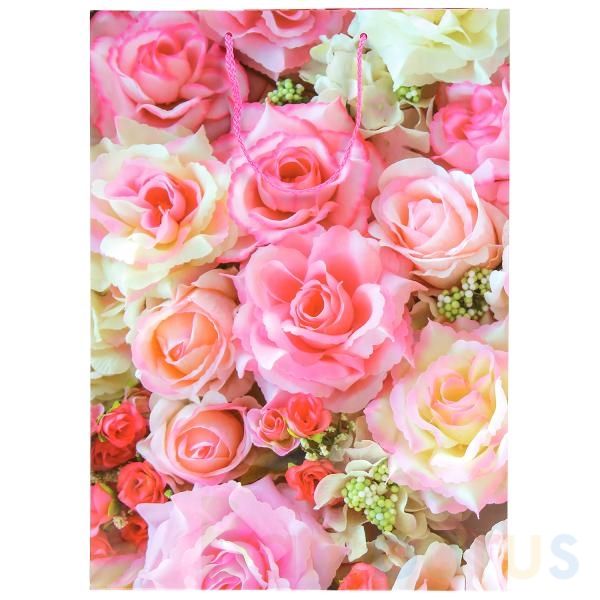 Красочный пакет, с изображением прекрасной цветочной композиции, принесёт ребенку радость предвкушения. Ему будет интересно заглянуть в него, чтобы узнать, что же приготовили родные или друзья на день рождения или на любой другой праздник.