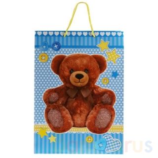 Праздничный подарочный пакет «Мишка» станет ярким запоминающимся штрихом, изюминкой детского подарка, принесёт ребёнку радость предвкушения. Ему будет интересно заглянуть в него, чтобы узнать, что же приготовили родные или друзья на День Рождения или любой другой праздник.
