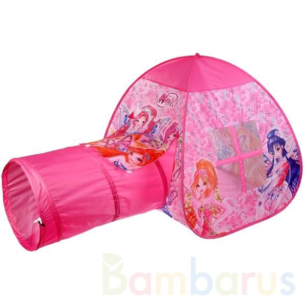 Игры с детской палаткой «Winx» «Играем вместе» – любимое развлечение каждого малыша! Она украшена изображениями персонажей одноимённого мультфильма и сочетает в себе несколько функций: