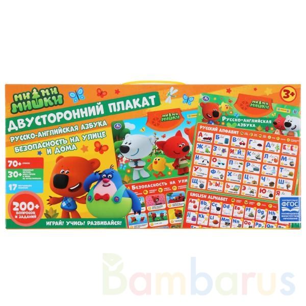 Двусторонний обучающий плакат «Ми-ми-мишки. Русско-английская азбука. Безопасность на улице и дома» ТМ «УМка» порадует маленького любознайку красочным дизайном и своим функционалом: