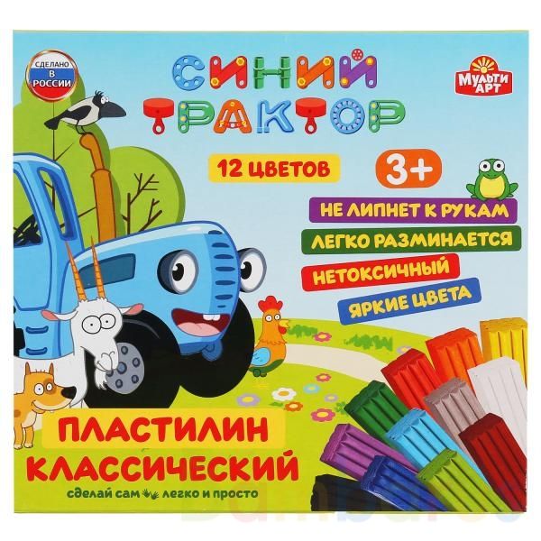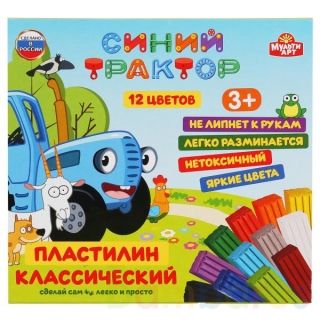 Пластилин классический «Синий трактор» ТМ «МультиАрт» – отличный подарок для развития творческих способностей ребёнка:- 12 цветов- не токсично- безопасно для детей- яркие цвета- не пачкает руки- не прилипает- легко разминается- стек для оформления поделок в комплекте- яркая упаковка с любимыми геро…