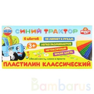 Пластилин классический «Синий трактор» ТМ «МультиАрт» – отличный подарок для развития творческих способностей ребёнка:- 6 цветов- не токсично- безопасно для детей- яркие цвета- не пачкает руки- не прилипает- легко разминается- стек для оформления поделок в комплекте- яркая упаковка с любимыми героя…