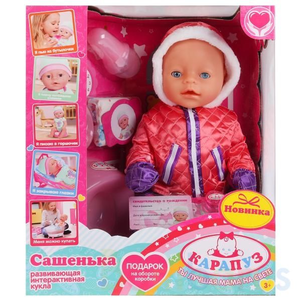 Эта особенная развивающая интерактивная куколка-пупс «Сашенька» ТМ «Карапуз» приятно удивит девочек, он - сразу 5 в 1: