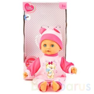 Интерактивная кукла ТМ «Карапуз» станет замечательным подарком для маленькой принцессы:- рассказывает 3 стихотворения А. Барто: «Бычок», «Зайка», «Мишка»- поёт песню «Лошадка»- мягкое телоКуколка одета в милый розовый комбинезон с принтом-мишкой и шапочку с ушками в тон. Одежду легко снять и надеть…