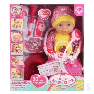 Развивающая интерактивная кукла с аксессуарами «Сонечка» ТМ «Карапуз» станет прекрасным подарком для вашего ребёнка: