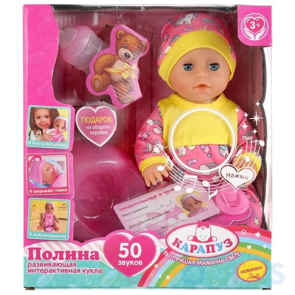 Развивающая интерактивная кукла с аксессуарами «Полина» ТМ «Карапуз» станет прекрасным подарком для вашего ребёнка: