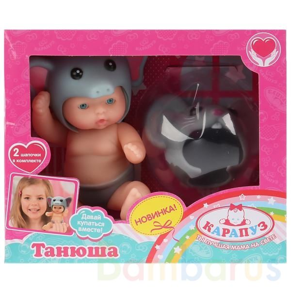 Танюшу можно купать. Ребёнку будет интересно менять образы куклы, одевая на неё разные шапочки (легко снять и надеть). Лицо пупса детально проработано.