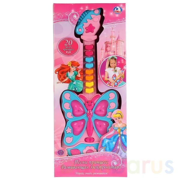 Волшебная электрогитара "УМКА" станет незабываемым подарком для девочки! Корпус гитары выполнен в виде очаровательной бабочки. Нажимая на разноцветные кнопочки, малышка услышит 20 песен принцесс. Подпевая им, она представит себя в роли настоящей звезды, выступающей на большой сцене. Световые эффекты добавят еще больше волшебства при игре на гитаре. Корпус выполнен из лёгкого пластика, игрушку удобно держать детскими ручками. Детская электрогитара "УМКА" тренирует мелкую моторику рук, развивает музыкальный слух, артистизм и память ребёнка. Предназначена для детей от 3 лет. Работает от 3 пальчиковых батареек типа АА (в комплекте).