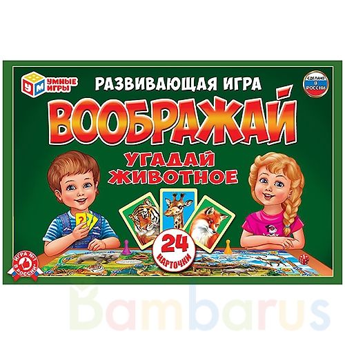 Развивающая игра-ходилка «Воображай» ТМ «Умные игры» – отличный вариант увлекательно провести время.Особенности и комплектация:- красочное игровое поле- 24 карточки с животными- занимательные вопросы- 4 фишки- кубик- понятные правила игрыВ игре могут участвовать как 2 человека, так и дружная компан…