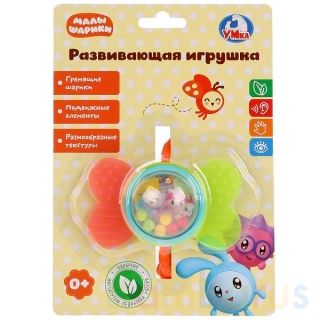 Малыша привлекут яркие, сочные цвета игрушки и подвижные герои его любимого мультфильма «Малышарики», которые находятся внутри прозрачной сферы.