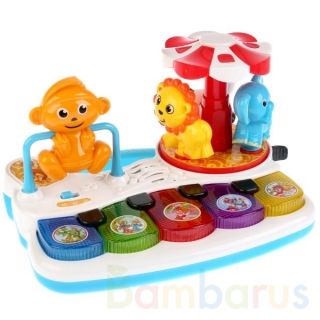 Развивающее пианино ТМ "УМка" со стихами К. Чуковского - лучший подарок подрастающему малышу. Оно выполнено из прочного пластика, все детали окрашены в яркие цвета. Крупные клавиши пианино, их удобно нажимать маленькими пальчиками. Сверху на нём установлена игрушка и небольшая карусель, поэтому с подвижными элементами играть ещё интереснее. При нажатии на разные кнопки, ребёнок услышит: