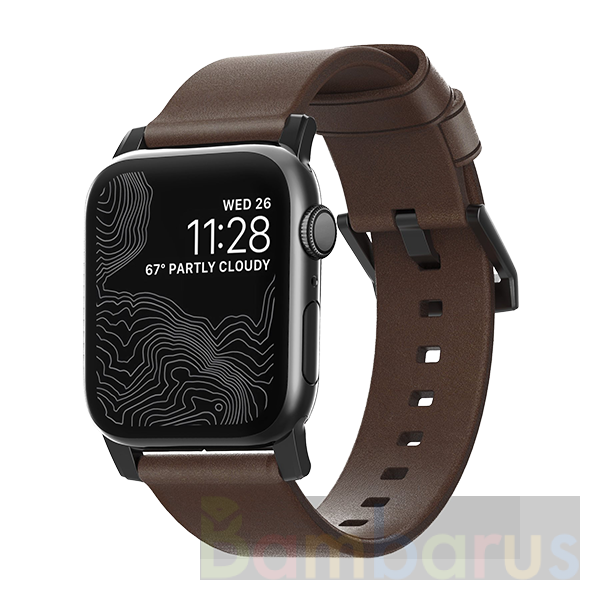 Ремешок Nomad Modern Strap для Apple Watch 44/42mm, черная застежка, кожаный (Темно-коричневый)