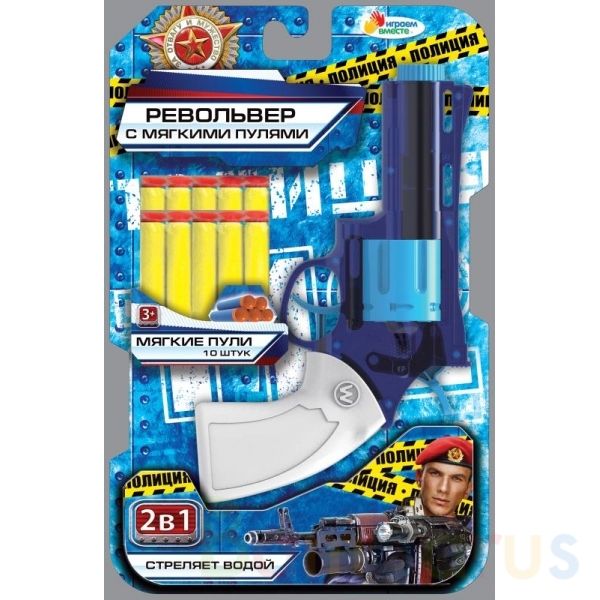 Револьвер с мягкими пулями ТМ «Играем вместе» непременно понравится юному герою:- стреляет водой- яркий дизайн- 10 мягких пульС этим игровым оружием ваш ребёнок будет придумывать увлекательные спецзадания, защищать мир и стоять на страже порядка. С таким револьвером маленький герой станет самым мет…