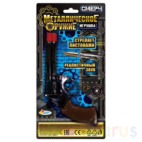 Металлический револьвер «Смерч» ТМ «Играем вместе» непременно понравится юному герою:- реалистичный звук- стреляет пистонами- 8 зарядов- стильный дизайнС этим игровым оружием ваш ребёнок будет придумывать увлекательные спецзадания, защищать мир и стоять на страже порядка. С таким револьвером малень…