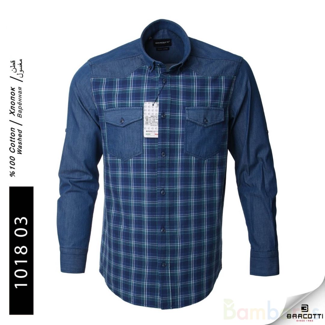 Стильная рубашка джинсовый покрой в клетку. Выполнена из мягкого «дышащего» хлопка. Элегантный вариант на все случаи:
