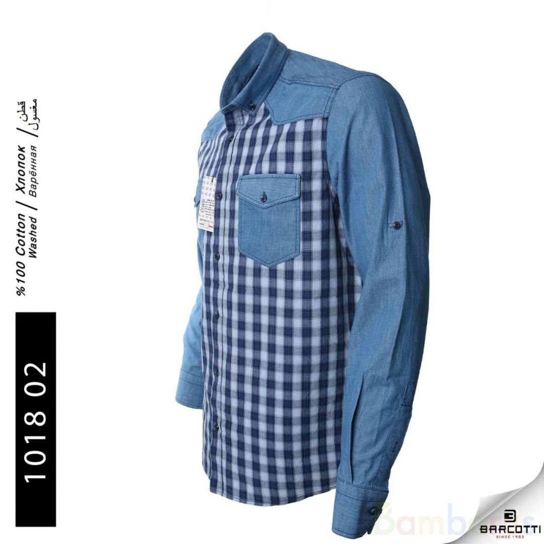 Стильная рубашка джинсовый покрой в клетку. Выполнена из мягкого «дышащего» хлопка. Элегантный вариант на все случаи: