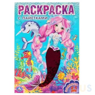 Раскраска с пайетками «Русалка» ТМ «УМка» станет отличным подарком для маленьких художников: