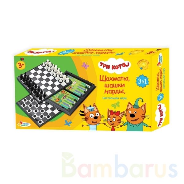 Набор магнитных настольных игр 3 в 1 «Три кота. Шахматы – шашки - нарды» ТМ «Играем вместе» – увлекательный и полезный досуг детей и взрослых.