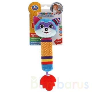 Текстильная погремушка с пищалкой «Енот» ТМ «УМка» разработана специально для самых маленьких: