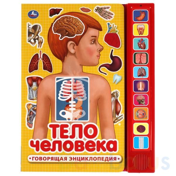 Эта книга - настоящая говорящая энциклопедия, которая познакомит малыша с устройством человеческого тела. Ребёнок с удовольствием будет рассматривать картинки, выполнять интересные задания и нажимать на звуковые кнопки. Одно нажатие на кнопку – включится звук, второе нажатие – выключится. Книжка сделана из плотного картона, поэтому родители могут не опасаться за её сохранность.