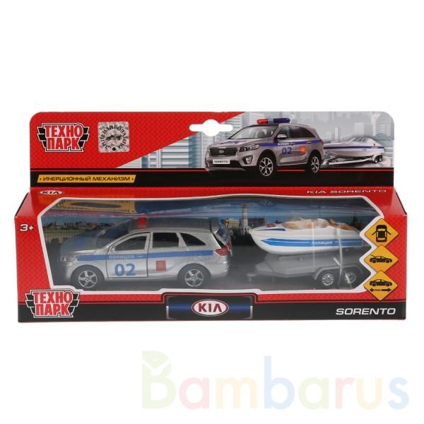 Металлическая модель «Kia Sorento Prime. Полиция» ТМ «Технопарк» - прекрасный подарок для ребёнка:- открываются передние двери- открывается багажник- лодка в комплекте- инерционный механизм (поставьте машинку на ровную поверхность, потяните за корпус назад, отпустите и она начнёт быстро двигаться в…