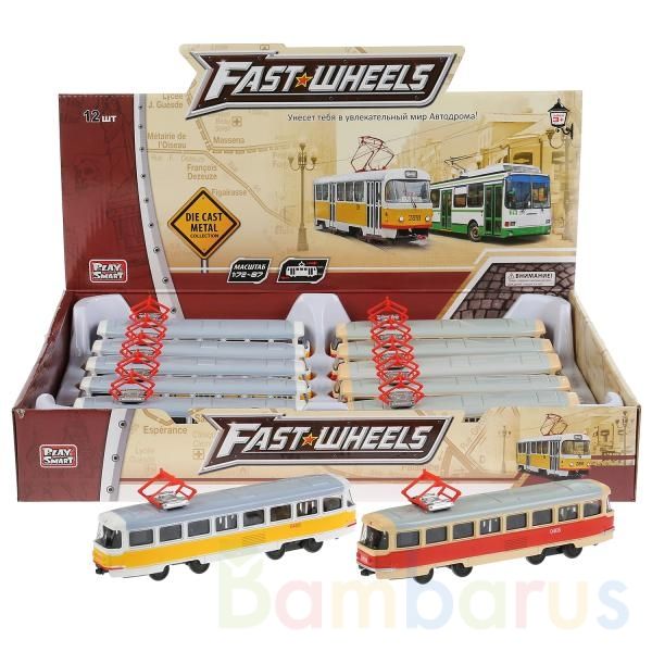 Металлическая модель трамвая является самой популярной игрушкой у маленького автолюбителя. Её можно возить по полу, столу и другой поверхности, играть дома, на улице, одному и с друзьями. Такая машинка дополнит автомобильный парк, а разнообразие дизайнов позволит собрать целую коллекцию. У игрушки установлен инерционный механизм: если потянуть её за корпус и отпустить, то она набирает скорость и сама едет вперёд. Развивает фантазию, память, мелкую моторику, расширяет кругозор. Масштаб 1:87. Рекомендуется детям от 3 лет.