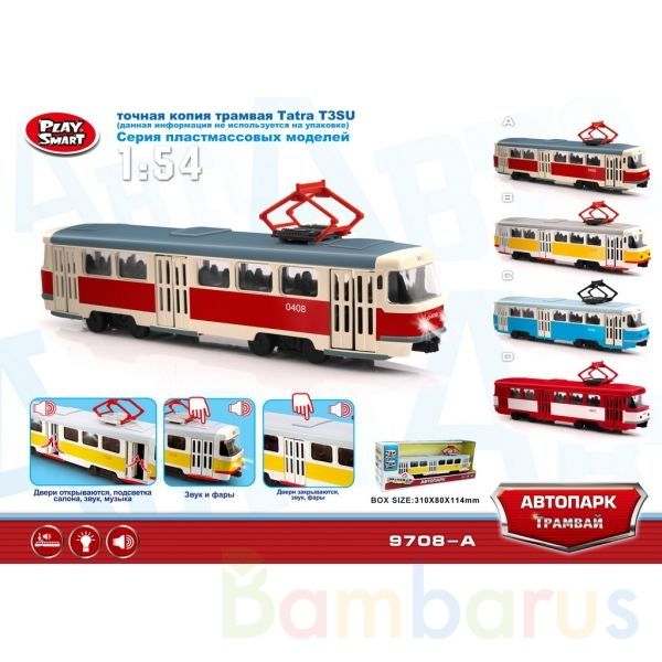 Машинка выполнена с учётом всех особенностей прототипа настоящего трамвая 1:54 . Реалистичный дизайн со световыми и звуковыми эффектами позволит с головой погрузиться в игру и почувствовать себя водителем трамвая. Благодаря открывающимся дверям, которые делают машинку максимально похожей на настоящую, всегда можно заглянуть к ней внутрь, чтобы убедиться – каждая деталь отлично проработана.