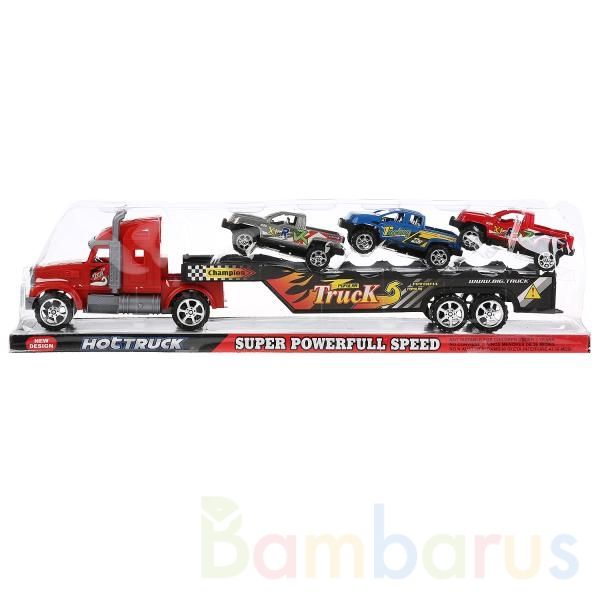 Реалистичный дизайн машин позволит с головой погрузиться в игру и почувствовать себя водителем большого трейлера. Можно перевозить машинки на платформе трейлера или играть с ними по отдельности. Машины всегда пригодятся в городском автопарке юного автолюбителя.