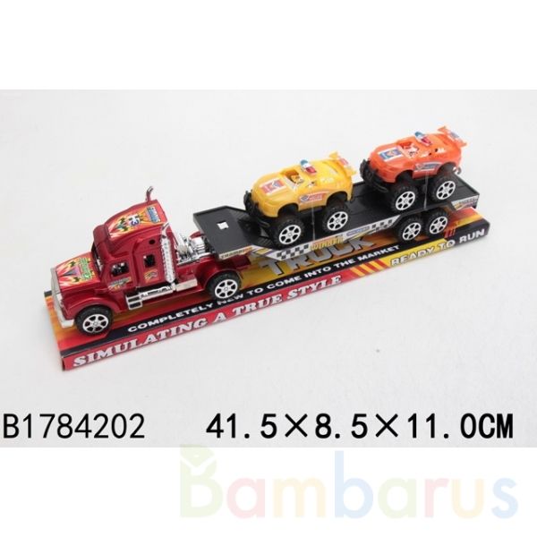 - Оригинальная игрушка: с возможностью ставить на платформу сзади более маленькие машинки или же снимать их и играть раздельно;