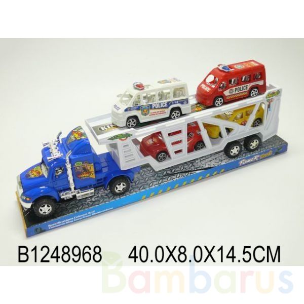 Игровой набор с трейлером, полицейскими микроавтобусами и легковыми автомобилями::