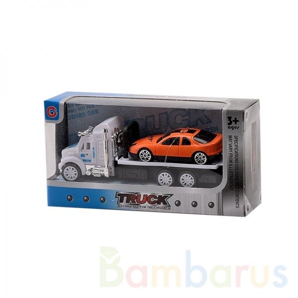 - В наборе 2 машины: курпный трейлер-автовоз + легковая машина, которые он перевозит;