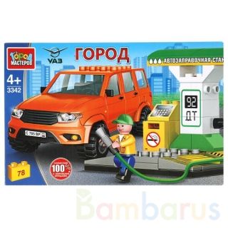 Конструктор «УАЗ Patriot на заправочной станции» из серии «Город» ТМ «Город мастеров» станет прекрасным подарком для маленького автолюбителя.