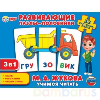 Развивающие пазлы-половинки 3 в 1 «М. А. Жукова» ТМ «УМка» - интересная игра для малышей:- 33 красочные карточки-пазлы- читаем слова- учим стихиЗадача ребёнка – правильно подобрать детали из набора, чтобы собрать пазлы с картинками и слогами. Благодаря небольшому количеству деталей, малыш без труда…