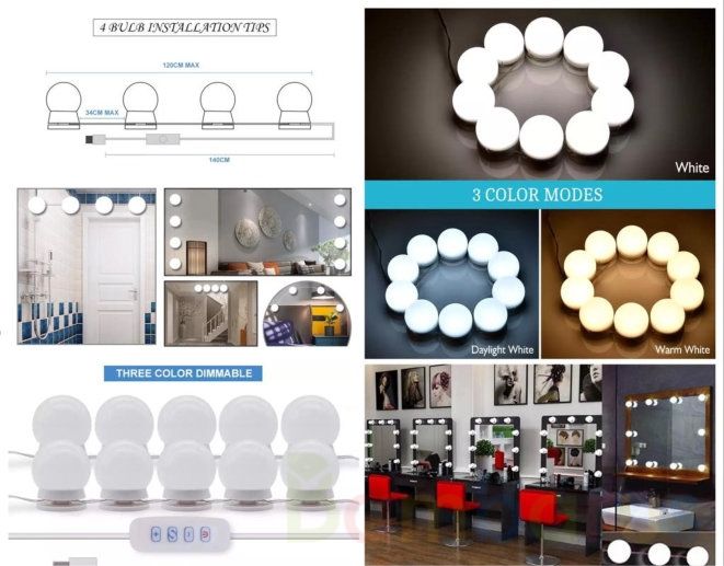 Настольный светильник для макияжа поставляется с 20 наклейками для удобства установки, без необходимости Сверления или пакетирования, без требований к другим инструментам или сложному процессу. Легко установить Настольный светильник для макияжа.