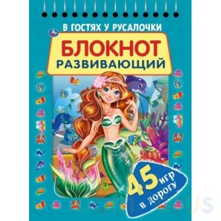 Развивающий блокнот в дорогу «В гостях у русалочки» ТМ «УМка» непременно понравится маленькой любознайке:- 45 интересных заданий- красивые иллюстрации- цветные и чёрно-белые странички- удобный форматНа страницах этого занимательного блокнота ребёнка ждут увлекательные игры, очаровательные русалочки…