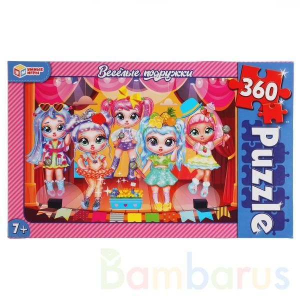 Классические пазлы в коробке «Весёлые подружки» ТМ «Умные игры» непременно понравятся маленькой любознайке:- 360 деталей- красивое изображение с очаровательными персонажами- насыщенные цвета- все элементы хорошо и плотно соединяются друг с другомЗадача ребёнка – в правильной последовательности соед…