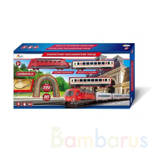 Железная дорога «Скоростной пассажирский поезд» ТМ «Играем вместе» станет отличным подарком для ребёнка:- звуковые эффекты- длина пути 392 см- 15 деталейЭта реалистичная железная дорога непременно понравится малышу. Ребёнок с удовольствием будет запускать поезд по рельсам и наблюдать за его движени…