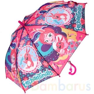 Купол зонта яркого цвета диаметром 45 см, украшает рисунок с героями мультсериала «Энчантималс». Зонт-трость легко раскрывается и складывается при нажатии на кнопку. Рукоять удобной формы – легко держать ребёнку. Свисток в комплекте поможет малышу, если он потеряется, подать знак, и мама легко отыщет ребёнка в толпе.