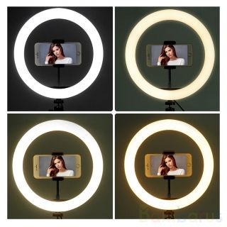 Кольцевая лампа диаметром 26 сантиметров оснащена 64 светодиодами, срок службы которых достигает 10 лет. Она имеет 3 режима работы в зависимости от температуры света: холодный, теплый и смешанный. В каждом из них доступна плавная регулировка яркости с помощью пульта управления. Источник питания в универсальном формате USB 5V позволяет подключить светодиодную лампу к компьютеру, внешнему аккумулятору или розетке с помощью адаптера.