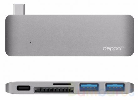 Коннектор USB 3.1 Type-C, Разъем USB 3.1 Type-C (до 5Гбит/с), 2 разъема USB 3.0 Type-А (до 5Гбит/с), Разъем для карт памяти формата microSDHC, Разъем для карт памяти формата SDHC, Светодиодный индикатор состояния, Материал корпуса: алюминий, Габаритные размеры: 89х28х8мм, Масса устройства: 21 г.