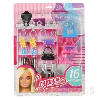 Набор аксессуаров для кукол «София» ТМ «Карапуз» разнообразит игры ребёнка:- подходит для кукол ростом 29 см.В комплекте:- 16 аксессуаров- расчёска- 4 сумочки- 4 пары серёг- 3 ожерелья- 4 пары обувиЭтот набор аксессуаров сделает игру в куклы намного увлекательнее. С его помощью малышка сможет созда…