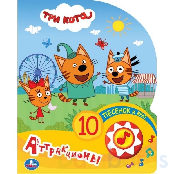 Музыкальная книжка «Три кота. Аттракционы» ТМ «УМка» станет прекрасным подарком для маленького поклонника мультсериала про любознательных котят: