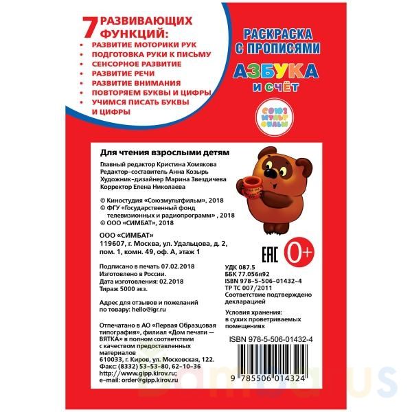 Раскраска с прописями «Азбука и счёт мультяшек» ТМ «УМка» приглашает детей порисовать и поучиться: