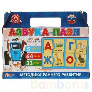 Азбука-пазл «Синий трактор» ТМ «УМка» - интересная развивающая игра в коробке-чемодане для маленьких поклонников мультсериала про весёлый трактор: