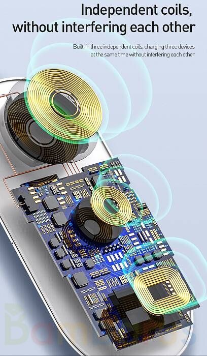 Baseus Smart 3in1 можно забыть о надоедливых проводах, которые нужно подключать к смартфону или часам во время их зарядки. Важно помнить, что на поверхность ЗУ нельзя класть металлические предметы, ведь это может привести к его поломке. Подключение зарядной станции к источнику питания происходит посредством комплектного кабеля USB-C. Не совместимо с Apple Watch 5 серии.