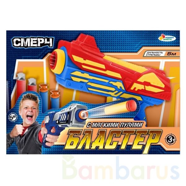 Бластер «Смерч» ТМ «Играем вместе» непременно понравится юному герою:- дальность стрельбы 5 м- стильный дизайн- удобная рукоять- безопасные мягкие пули в комплектеС этим игровым оружием ваш ребёнок будет придумывать увлекательные спецзадания, защищать мир и стоять на страже порядка. С таким бластер…