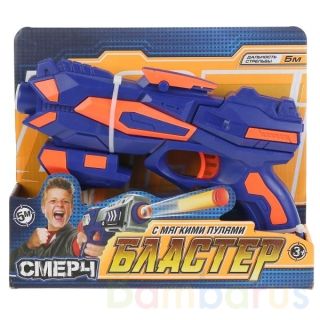 Бластер с мягкими пулями «Смерч» ТМ «Играем вместе» станет отличным подарком для юного героя:- дальность стрельбы - до 5 м- безопасные мягкие пули- удобная рукоять - стильный дизайн С этим ярким бластером ваш ребёнок станет самым метким стрелком, будет придумывать увлекательные спецзадания, защищат…