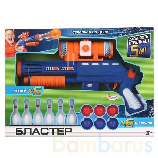 Игровой «Бластер» ТМ «Играем вместе» станет отличным подарком для юного стрелка:- 6 шариков- 6 кеглей - дальность стрельбы – 10 м- удобная рукоять с нескользящим покрытиемС бластером ребёнок станет самым метким стрелком, будет придумывать увлекательные спецзадания, защищать мир и стоять на страже п…
