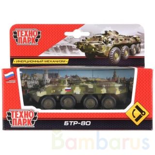 Инерционная металлическая модель «БТР-80» ТМ «Технопарк» непременно понравится юному любителю военной техники: